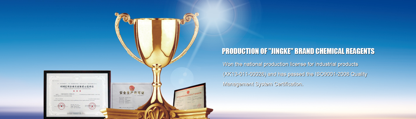 The company has employed senior engineers from Shanghai reagent industry as technical director. It has strong technical force, advanced production equipment, and excellent product quality. Our "Jinke" brand chemical reagent has won the national production license for industrial products (XK13-011-00026) and has passed the ISO9001-2008 Quality Management System Certification.